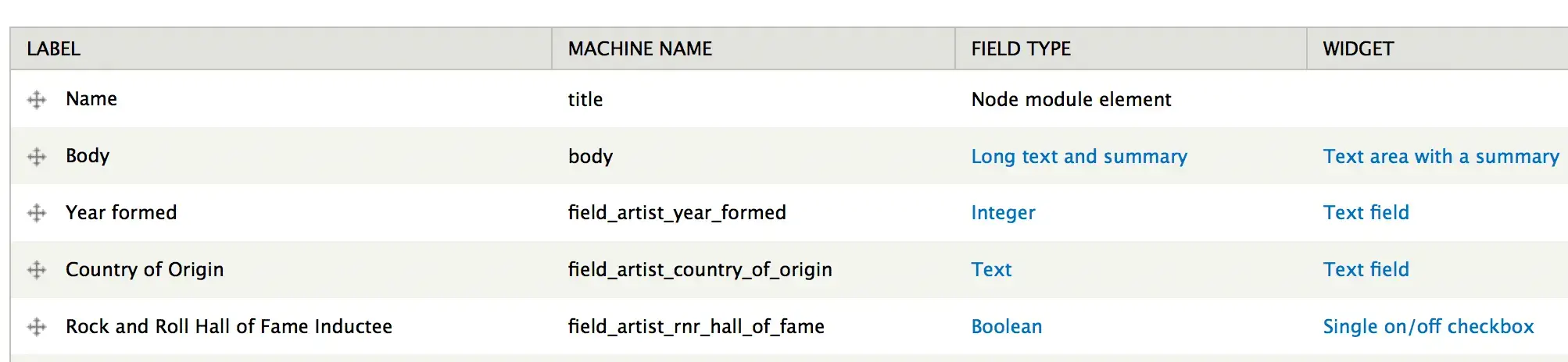 - bundle — The machine name of our our content type.