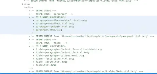 For our component, we’re first going to create a paragraph in Drupal named “Callout” with 3 fields: Title, Subtitle, and Button (two “Text (plain)” fields and one “Link” field). Now, let’s go ahead and add that paragraph to a content type and then test adding a piece of content with our Callout fields populated. Once you’ve done this, you should see an unstyled piece of content. Also, if you have enabled Twig debugging, you should see something like this when inspecting your content: