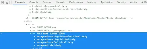 Let’s use paragraphu002du002dcard-grid.html.twig and replace the default content with the following:
