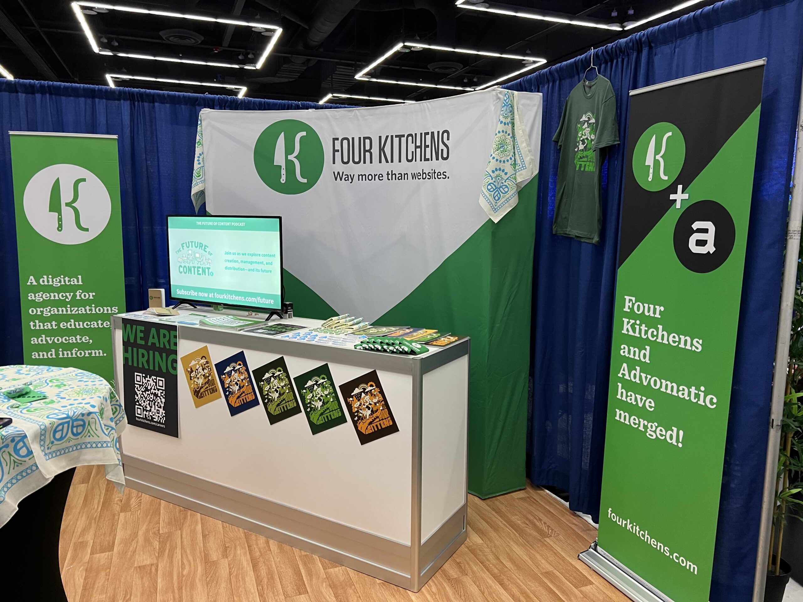 For a large part of my time at DrupalCon, I greeted and spoke with visitors at our Four Kitchens booth in the main expo hall. But I also made an effort to fill my own “expo hall passport” for a chance to win one of several cool prizes. This meant visiting all of the other booths in the hall, which was energizing and exciting in itself. I met several other organizations that, like Four Kitchens, make a conscious effort to do good in their communities and to work with clients that are making a difference in the lives of those who need it most