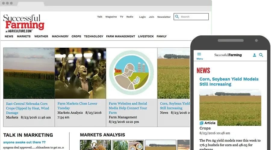 We helped Meredith Agrimedia combine the visual style of Successful Farming magazine with the utility of Agriculture.com. The result is a digital publishing platform that complements, rather than competes with, the print magazine